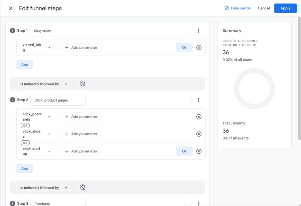 - The most crucial aspect is setting the phases outlining the user pathways you want to evaluate. To construct phases, click on the pencil icon next to phases and determine phases using your events and parameters. Within each stage, you can determine the special events and parameters. Steps can occur many times inside the identical session or over apart sessions, dependent on user activity.